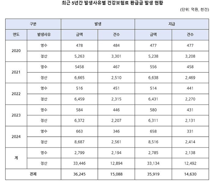 ±¹È¸ º¸°Çº¹ÁöÀ§¿øÈ¸ ¼Ò¼Ó ¼¿µ¼® ÀÇ¿ø(´õºÒ¾î¹ÎÁÖ´ç)ÀÌ ±¹¹Î°Ç°º¸Çè°ø´ÜÀ¸·ÎºÎÅÍ Á¦Ãâ¹ÞÀº ÀÚ·á¿¡ µû¸£¸é 2020³âºÎÅÍ Áö³ÇرîÁö ÃÖ±Ù 5³â°£ ¹ß»ýÇÑ °Ç°º¸Çè·á ȯ±Þ±Ý ÃѾ×Àº 3Á¶6245¾ï ¿ø¿¡ ´ÞÇß´Ù. ÀÌ Áß 221¾ï ¿øÀÌ °¡ÀÔÀÚ¿¡°Ô µ¹¾Æ°¡Áö ¸øÇÏ°í ¼Ò¸êµÈ °ÍÀ¸·Î È®ÀεƴÙ.