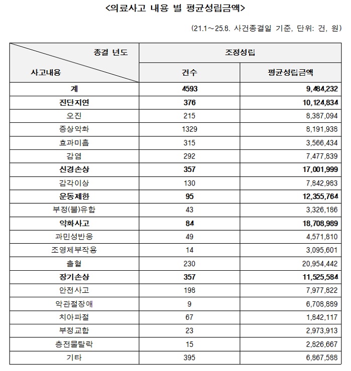 ³²Àμø ÀÇ¿øÀÌ ÀÇ·áÁßÀç¿øÀ¸·ÎºÎÅÍ Á¦Ãâ¹ÞÀº ÀÚ·á¿¡ µû¸£¸é ÃÖ±Ù 5³â°£ Á¶Á¤ÀÌ ¼º¸³µÈ °Ç¼ö´Â 4593°ÇÀ̸ç, À̵éÀÇ Æò±Õ ¼º¸³±Ý¾×Àº 948¸¸4232¿øÀ̾ú´Ù. ‘Æò±Õ ¼º¸³±Ý¾×’Àº ÀÇ·áºÐÀï Á¶Á¤ÀÌ ÇÕÀǵǰųª Á¶Á¤ÀÌ ¼º¸³µÈ ¹è»ó¾×ÀÇ Æò±ÕÀ» ÀǹÌÇÑ´Ù.