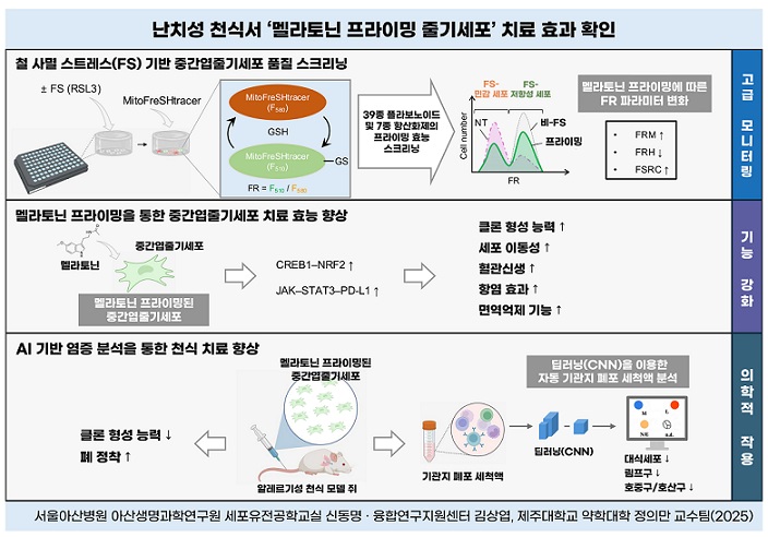 ½Åµ¿¸í ¼¿ï¾Æ»êº´¿ø ±³¼ö´Â “À̹ø ¿¬±¸´Â ±¹Á¦ ¾àÀü¿¡ µî·ÏµÈ ¾ÈÀüÇÑ ¹°ÁúÀÎ ¸á¶óÅä´ÑÀ» Èĺ¸ ¹°Áú·Î ¼±Á¤ÇØ Áٱ⼼Æ÷ÀÇ ±â´ÉÀ» È¿°úÀûÀ¸·Î ³ô¿´´Ù´Â µ¥ ÀÇÀǰ¡ ÀÖ´Ù”¸ç “Ä¡·á È¿´ÉÀ» ½Ç½Ã°£À¸·Î ¿¹ÃøÇÒ ¼ö ÀÖ´Â ±â¼úÀ» Ȱ¿ëÇØ, ÇâÈÄ ½ÇÁ¦ ÀÓ»ó ÇöÀå¿¡¼ »ç¿ëÇÒ ¼ö ÀÖ´Â °í¼º´É Áٱ⼼Æ÷ Ä¡·áÁ¦ °³¹ßÀÇ Áß¿äÇÑ ½Ç¸¶¸®°¡ µÉ °Í”À̶ó°í ¹àÇû´Ù.