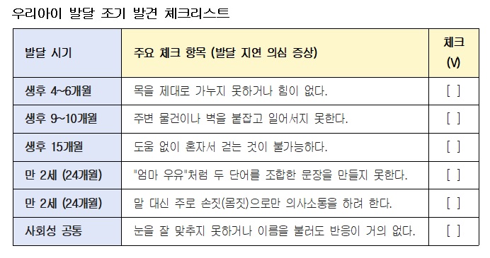 ¾ÆÀÌÀÇ ¼ºÀå °úÁ¤¿¡¼­ ¹ß´Þ Áö¿¬À» Á¶±â¿¡ ¹ß°ßÇϱâ À§Çؼ­´Â ½Ã±âº° ±âÁØÁ¡À» ¼¼½ÉÈ÷ »ìÆì¾ß Çϴµ¥ º¸Åë 4~6°³¿ù¿¡ ¸ñÀ» Á¦´ë·Î °¡´©Áö ¸øÇϰųª 9~10°³¿ùÀÌ µÇ¾îµµ ¹«¾ð°¡¸¦ ºÙÀâ°í ¼­Áö ¸øÇÑ´Ù¸é ÁÖÀǰ¡ ÇÊ¿äÇÏ´Ù.