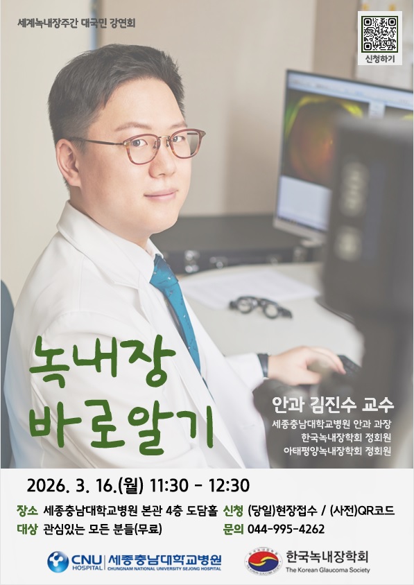 ¿ÃÇØ °¿¬Àº ³ì³»ÀåÀÇ ¿Ã¹Ù¸¥ Ä¡·á¹ýÀ» Áß½ÉÀ¸·Î ÁøÇàµÉ ¿¹Á¤ÀÌ´Ù. ƯÈ÷ À̹ø ÀÚ¸®¿¡¼´Â ±èÁø¼ö ±³¼ö°¡ ÃÖ±Ù ¼¼°èÀûÀÎ ±ÇÀ§ÀÇ ÇмúÁöÀÎ ¡º³ì³»Àå Àú³Î(Journal of Glaucoma)¡»¿¡ ¹ßÇ¥ÇØ ÈÁ¦°¡ µÈ ¿¬±¸ ³»¿ëµµ »ó¼¼È÷ ´Ù·ïÁú °ÍÀ¸·Î º¸¿© ±â´ë¸¦ ¸ðÀº´Ù.