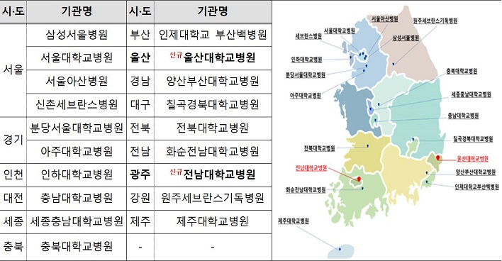 Áúº´°ü¸®Ã»Àº Áö¿ª °£ Èñ±ÍÁúȯ °ü¸® °ø¹éÀ» ÇØ¼ÒÇϱâ À§ÇØ 30ÀÏ Àü³²´ëÇб³º´¿ø(±¤ÁÖ)°ú ¿ï»ê´ëÇб³º´¿ø(¿ï»ê)À» ‘Èñ±ÍÁúȯ Àü¹®±â°ü’À¸·Î Ãß°¡ ÁöÁ¤Çß´Ù°í ¹àÇû´Ù.