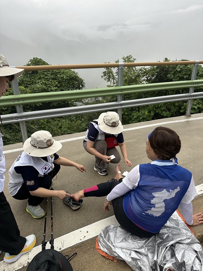 µµº¸ µµÁß µµ¿òÀ» ¿äûÇÑ »ç¶÷Àº ´Ü ÇÑ ¸í, »÷µéÀ» ½Å°í °È´Ù ¹ßÀÌ ¾µ·Á ¼Òµ¶À» ¿äûÇÑ Âü°¡ÀÚ»ÓÀ̾ú´Ù. ¾î¼¸é Âü°¡ÀÚµéÀº ¾ÆÇÄÀ» °ßµð´Â ¹ýÀ», ¾Æ´Ï ÇÔ²² °ßµð´Â ¹ýÀ» ÀÌ¹Ì Ã¼µæÇÑ µí º¸¿´´Ù. °íÅëÀ» ¸»·Î ³»¹ñ´Â ´ë½Å, ¼·Î¿¡°Ô ¸»¾øÀÌ ¹°À» °Ç³×°í, °È´Â ¼Óµµ¸¦ ¸ÂÃß´Â °ÍÀ¸·Î ¿¬´ë¸¦ Ç¥ÇöÇϰí ÀÖ¾ú´Ù.