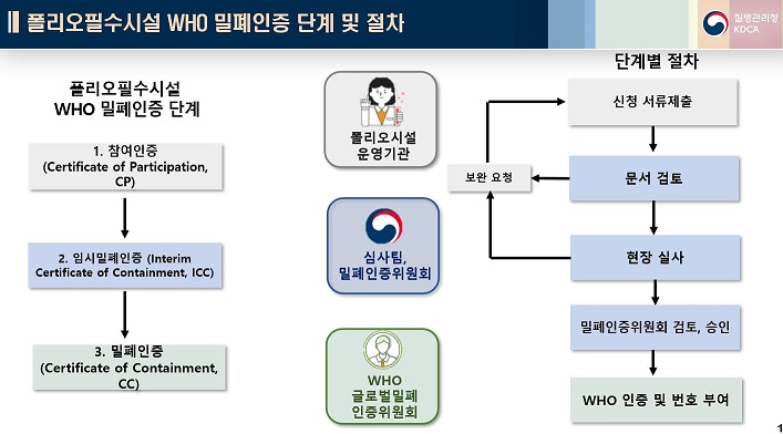WHO ¹ÐÆóÀÎÁõÀº Æú¸®¿À¹ÙÀÌ·¯½ºÀÇ ¾ÈÀüÇÑ Ãë±ÞÀ» À§ÇÑ ¹ÐÆó½Ã¼³ ±âÁذú À§Çذü¸® ü°è¸¦ Æò°¡ÇÏ´Â ÀýÂ÷·Î WHO ÁöħÀÎ ‘±Û·Î¹úÇൿ°èȹ Á¦4ÆÇ, GAPIV’¸¦ ±â¹ÝÀ¸·Î ÁøÇàµÈ´Ù.