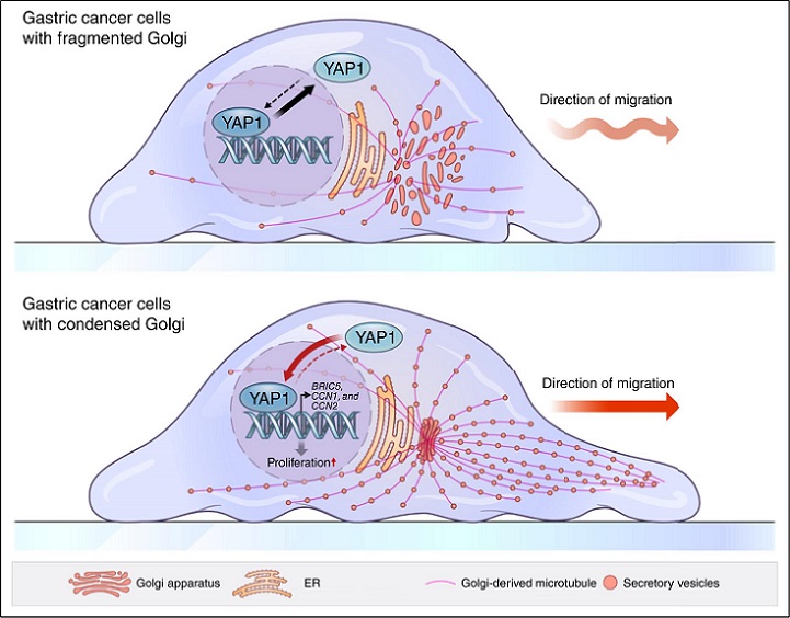 ¼¼Æ÷ ¼Ó¿¡¼­ ´Ü¹éÁúÀ» ºÐ·ù·Æ÷ÀåÇÏ´Â ‘¼¼Æ÷ÀÇ ¿ìü±¹’À¸·Î ¾Ë·ÁÁø °ñÁöü(Golgi apparatus)ÀÇ ±¸Á¶Àû º¯È­°¡ À§¾Ï ¾Ç¼ºÈ­ÀÇ °áÁ¤Àû ¿äÀÎÀÓÀÌ ¼¼°è ÃÖÃÊ·Î ±Ô¸íµÆ´Ù. ÀÌ´Â ±âÁ¸ Ç×¾Ï ¿¬±¸ÀÇ ÆÐ·¯´ÙÀÓÀ» ¹Ù²Ü Çõ½ÅÀûÀÎ ¹ß°ßÀ¸·Î Æò°¡µÈ´Ù.