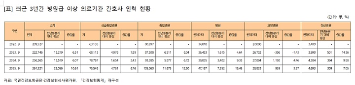 Á¾ÇÕº´¿øÀº ´õ¿í °¡ÆÄ¸¥ Áõ°¡¼¼¸¦ º¸¿´´Ù. 2025³â 9¿ù °£È£»ç´Â 10¸¸5060¸íÀ¸·Î Àü³â ´ëºñ 12.50%(1¸¸1675¸í) Áõ°¡Çß´Ù.