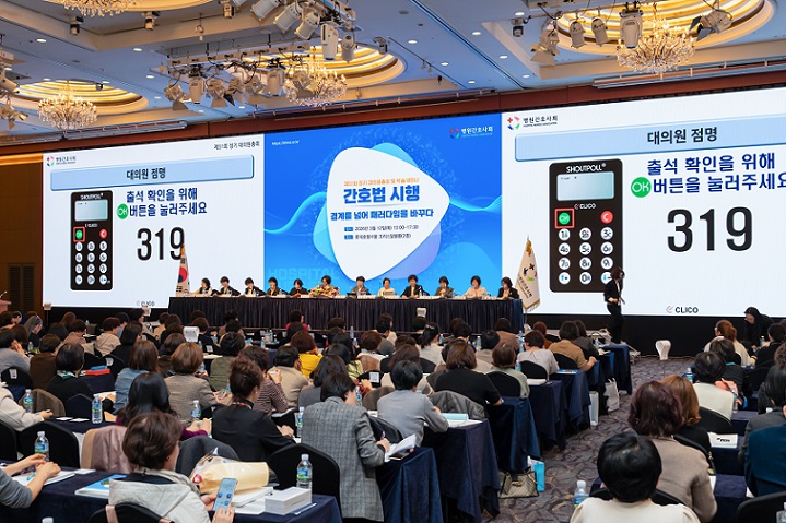 À̹ø ÃÑȸÀÇ ÇÙ½É ÀÇÁ¦´Â ‘°£È£¹ý ½ÃÇà: °æ°è¸¦ ³Ñ¾î ÆÐ·¯´ÙÀÓÀ» ¹Ù²Ù´Ù’¿´´Ù. º¯ÈÇÏ´Â ÀÇ·á ȯ°æ ¼Ó¿¡¼ º´¿ø °£È£°¡ ȯÀÚ ¾ÈÀü°ú ÀÇ·á Áú Çâ»óÀÇ Áß½ÉÃàÀ¸·Î ÀÚ¸®¸Å±èÇϰڴٴ ÀÇÁö¸¦ ´ã¾Ò´Ù.