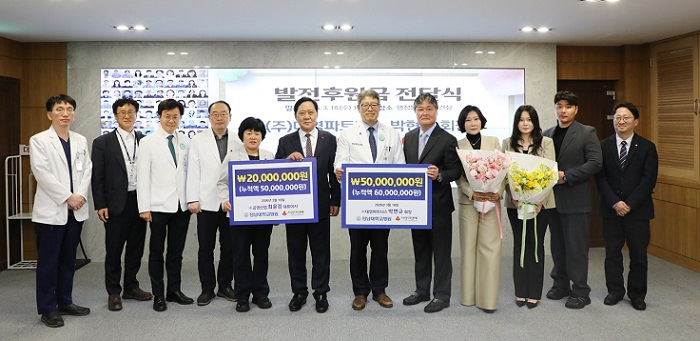 Àü³²´ëÇб³º´¿øÀº Áö³ 18ÀÏ º´¿ø ÇàÁ¤µ¿ Á¢°ß½Ç¿¡¼ ¢ß´ë¿µÆÄÆ®³Ê½º ¹ÚÇö±Ô ȸÀå°ú ¢ß°ø¿µ»ê¾÷ ÃÖÀ±°æ ´ëÇ¥À̻簡 Àú¼ÒµæÃþ ȯÀÚ Ä¡·á¸¦ À§ÇÑ ¹ßÀüÈÄ¿ø±Ý 7000¸¸ ¿øÀ» ±âŹÇß´Ù°í ¹àÇû´Ù.